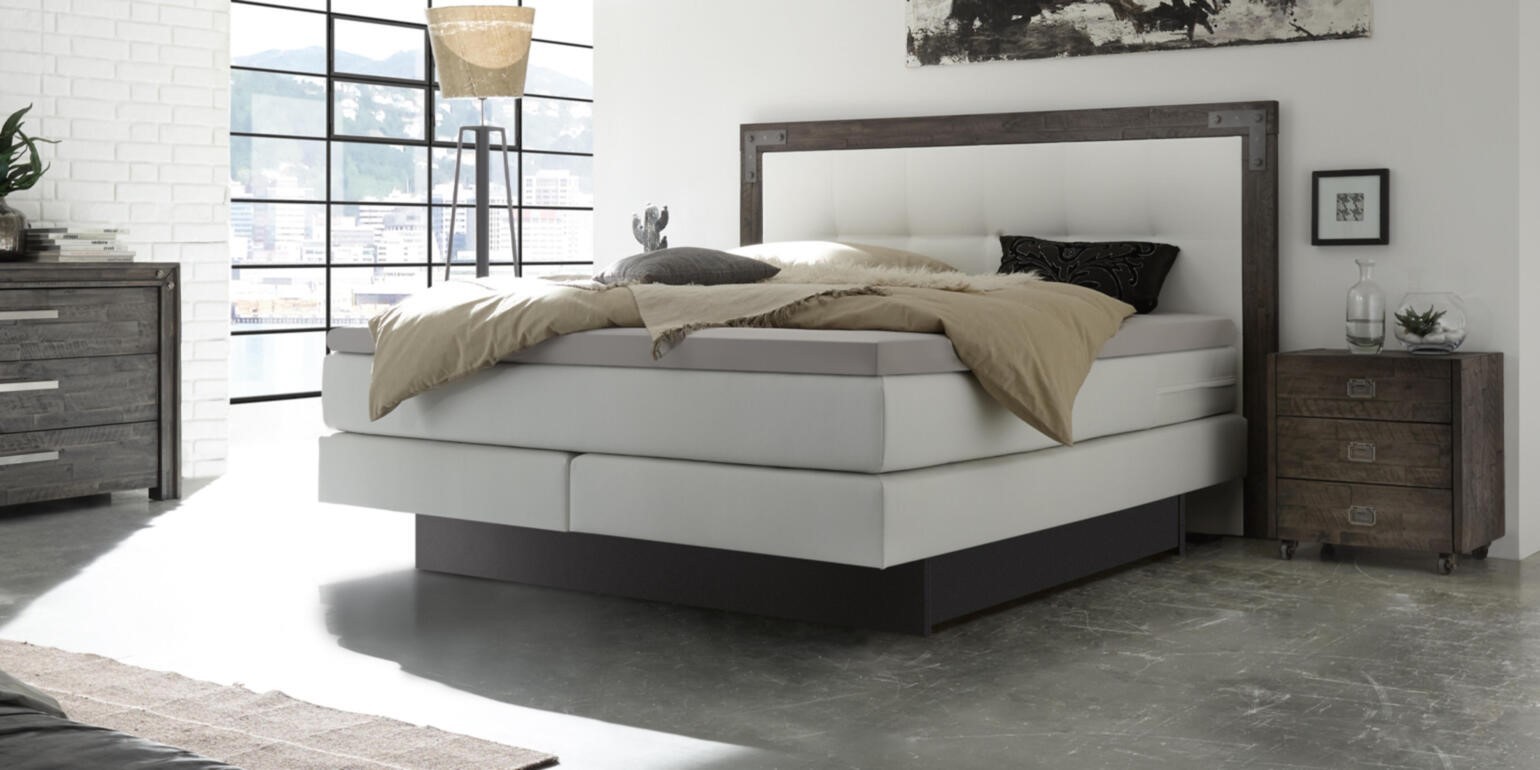 Lit Boxspring complet Kull white avec 2 tiroirs anthracite