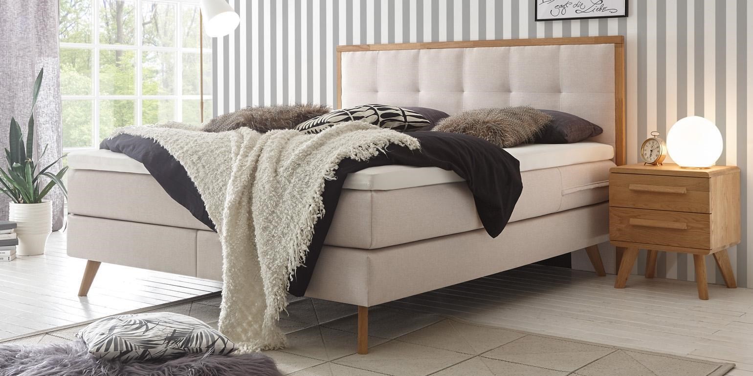 Lit Boxspring complet avec cadre en chêne huilé.Tête de lit rembourrée 2 sommiers hauteur 18cm1 matelas medium-ferme hauteur 20cm1 surmatelas Base hauteur 6cmRevêtement à choix 3 couleurs tissu Pepe ou cuir synthétique Kull.