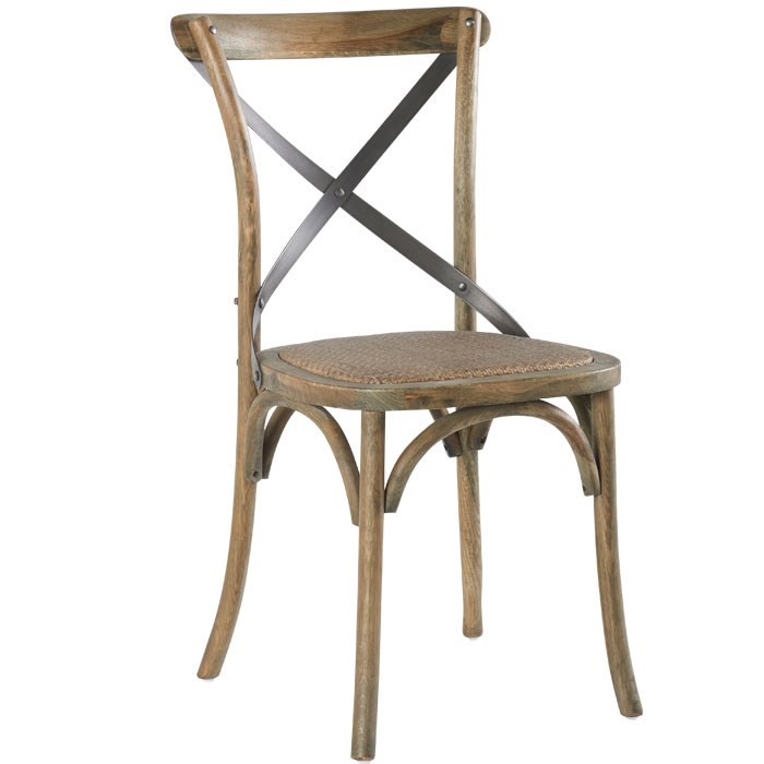 Chaise bistrot dossier fer vieilli - Chêne ciré - Assise cannage rotin