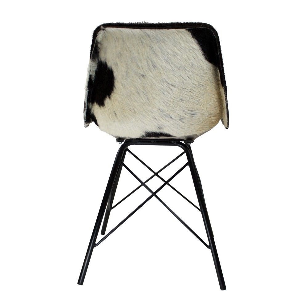 Chaise piétement acier noir, coque recouverte de peau de vache noir-blanc