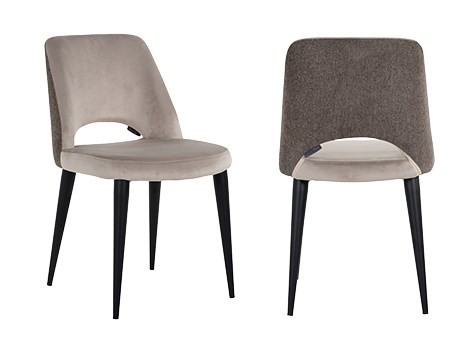 Chaise rembourée avec 2 tissus, pieds en acier noir.