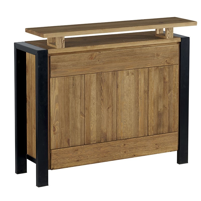 Bar 2 tiroirs et 2 étagères armature en métal noir et corps en pin massif brossé et lasuré, largeur 126cm profondeur50cm hauteur 110cm