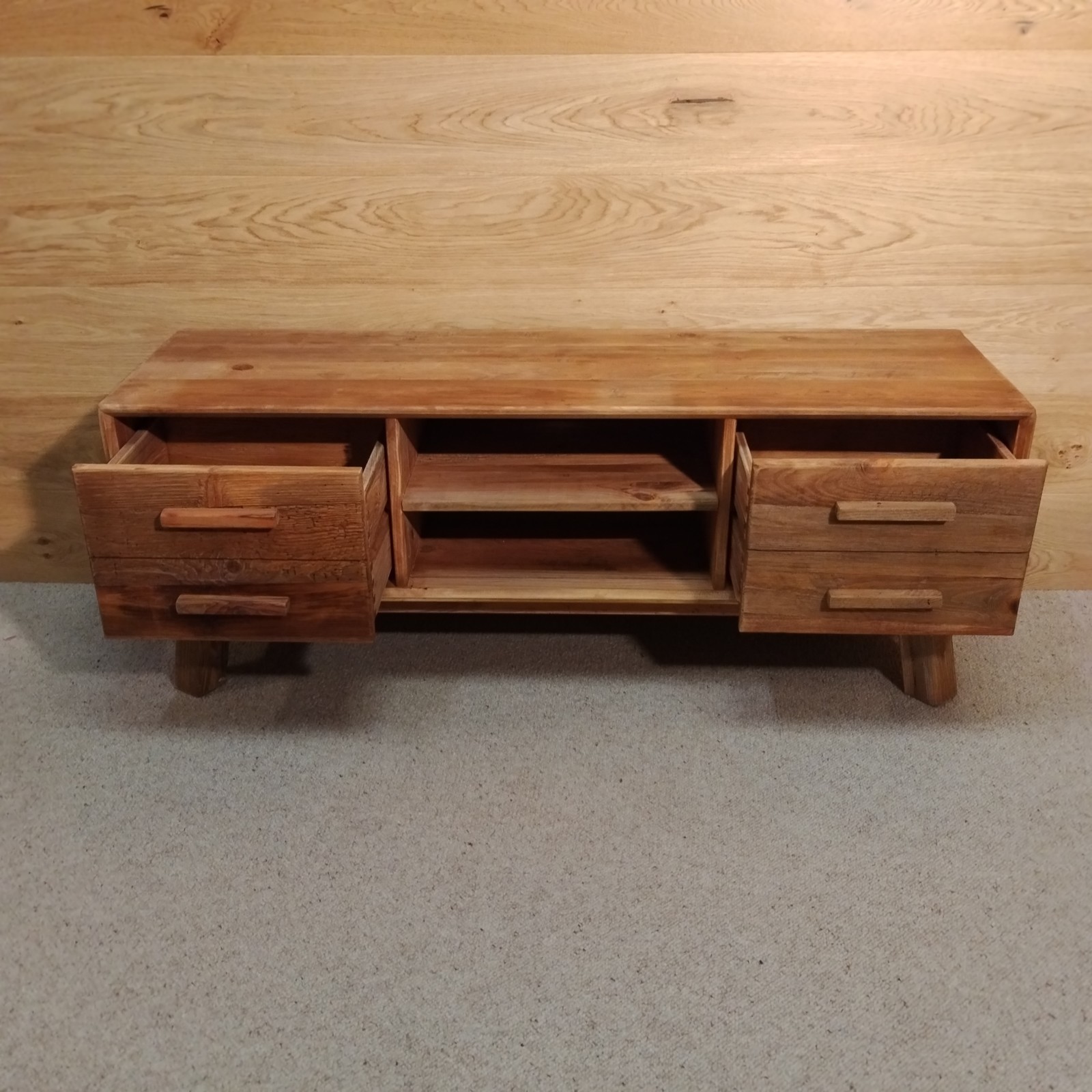 Meuble TV avec 4 tiroirs en vieux pin massif