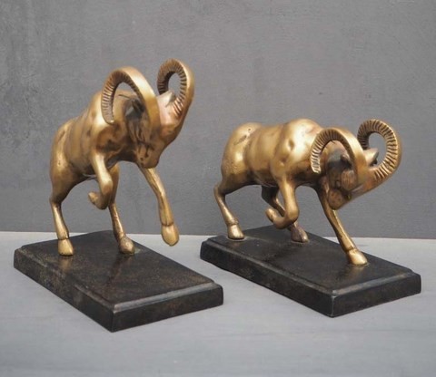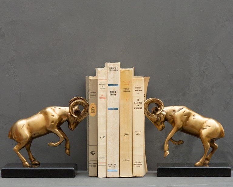 Serre-livres Béliers en métal doré